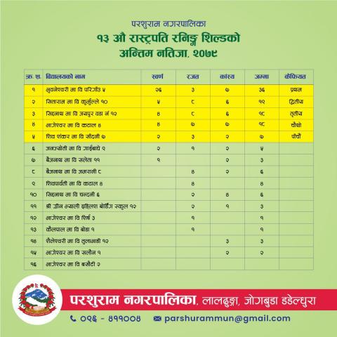 » १३ औ राष्ट्रपति रनिङ शिल्ड प्रतियोगिताको नतिजा २०७९ ।