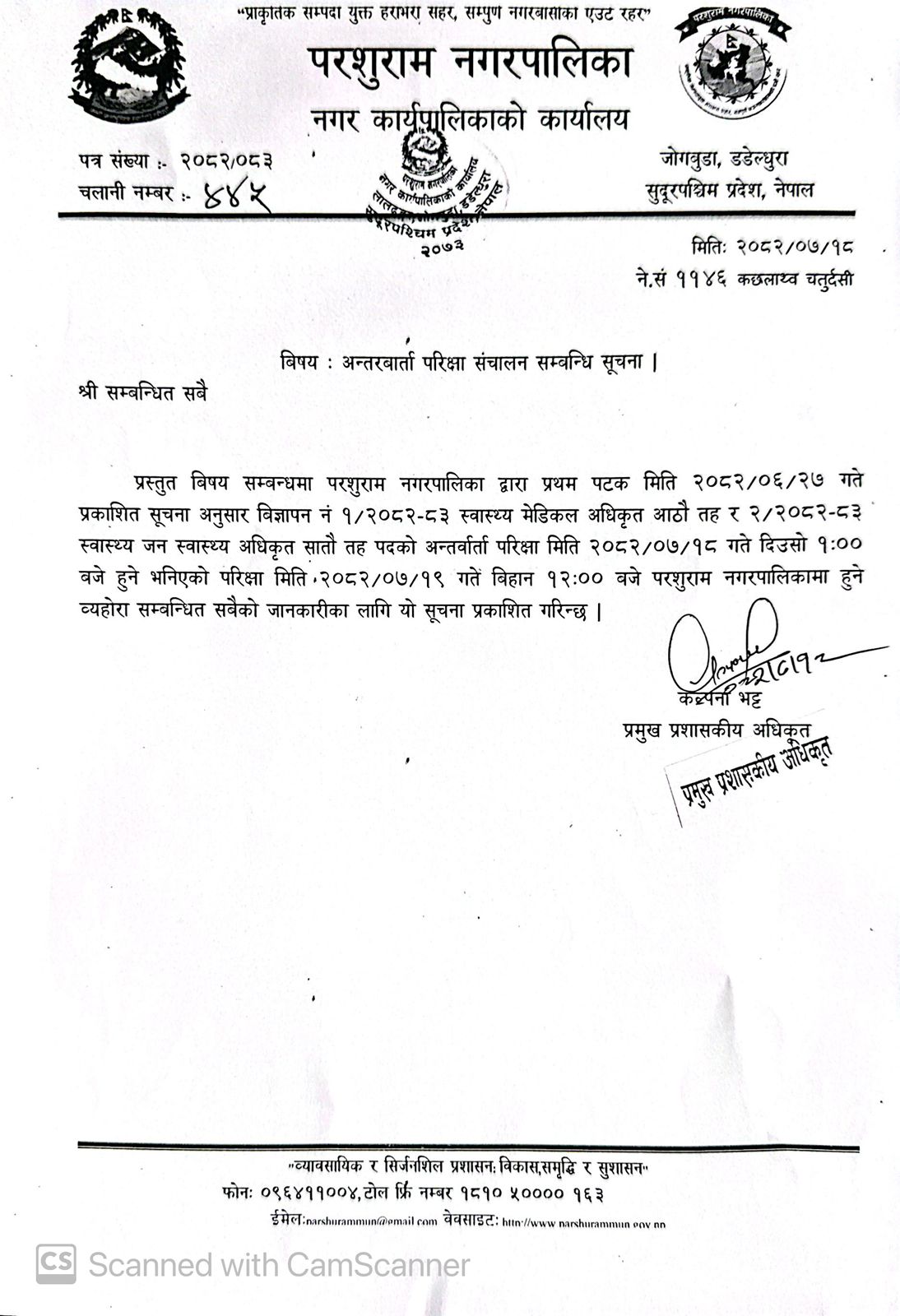 अन्तरबार्ता परीक्षा संचालन सम्बन्धि सूचना ।