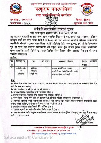 » कर्मचारी आवश्यकता सम्बन्धी सूचना ।