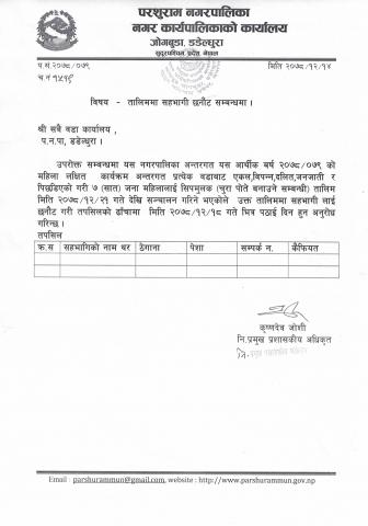 तालिममा सहभागी छनौट सम्बन्धी सूचना ।