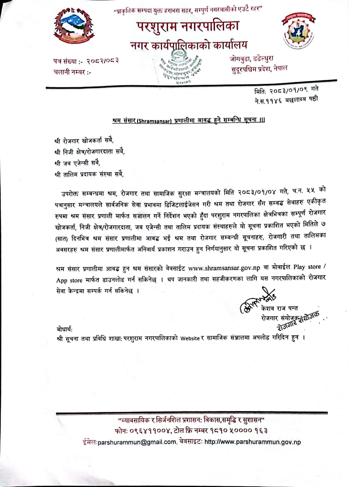 श्रम संसार (Shramsansar) प्रणालीमा आवद्ध हुने सम्बन्धि सूचना !!!